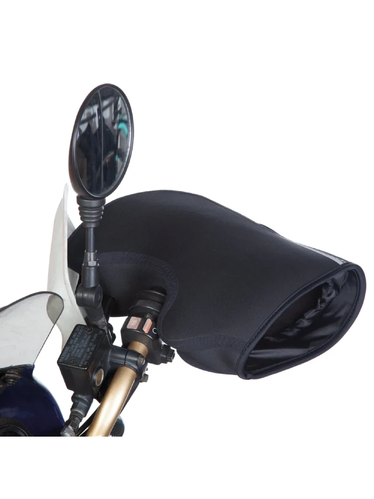 Nowy system montażu na kierownicy – przy użyciu śruby ciężarka lub specjalnego dysku – zapewnia stabilność i pozwala na swobodny powrót manetki gazu, co przekłada się na bezpieczeństwo i wygodę jazdy. Lewy pokrowiec został zaprojektowany tak, by obejmować także przyciski sterujące, dzięki czemu masz do nich łatwy dostęp nawet w rękawicach. Sztywne wejście z elastycznym ściągaczem dobrze dopasowuje się do dłoni i zatrzymuje zimne powietrze na zewnątrz.