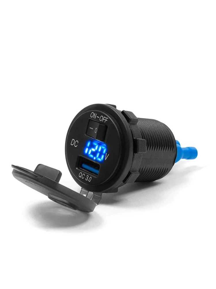 - Gniazdo USB Quick Charge 3.0 z woltomierzem i wyłącznikiem marki Biketec