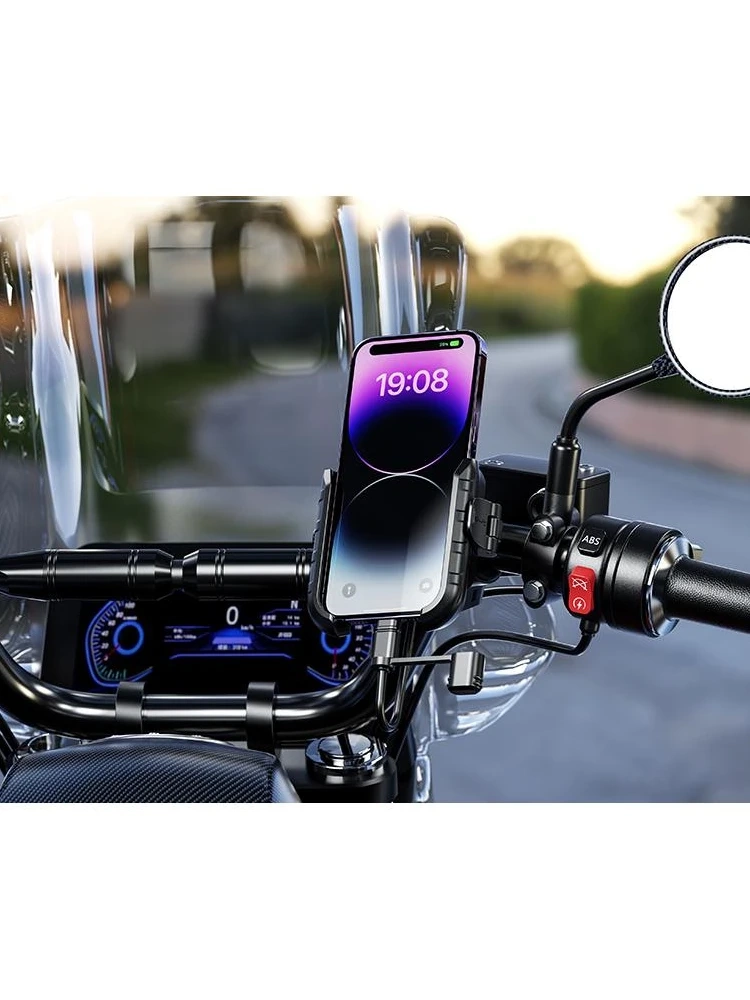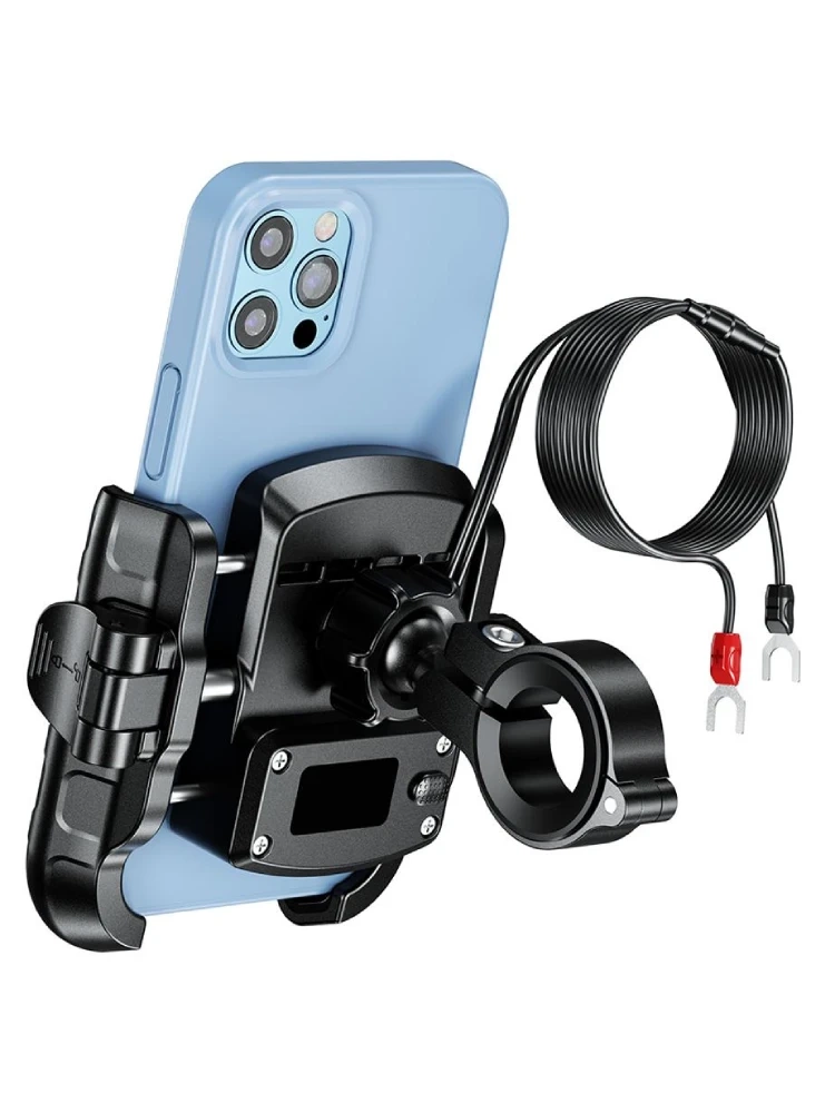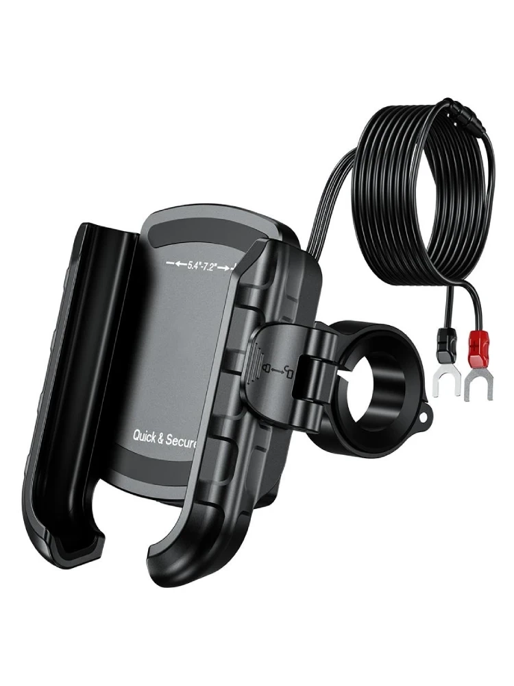Uchwyt motocyklowy na telefon Biketec Quick Lock z ładowarką USB 3.0 PD, montowany na kierownicę/ lusterko czarny [Typ: R9-CLIP-PD]