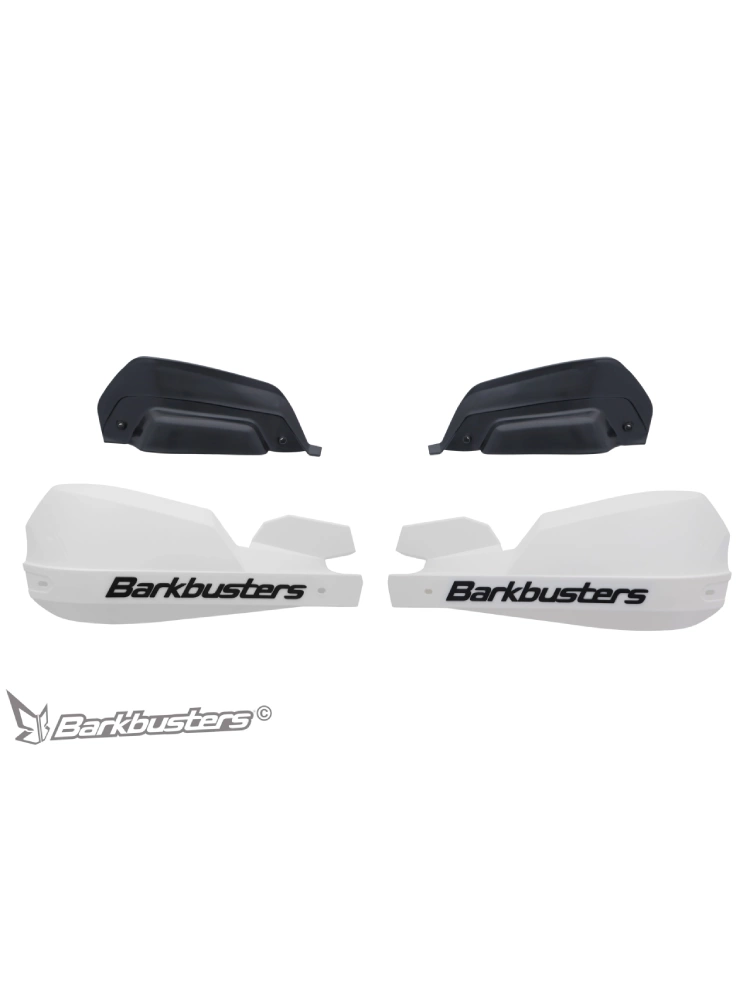 Osłony dłoni Barkbusters VPS z regulowanymi deflektorami, biało-czarne + zestaw montażowy Ducati, CF Moto (wybrane modele)
