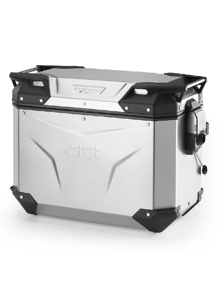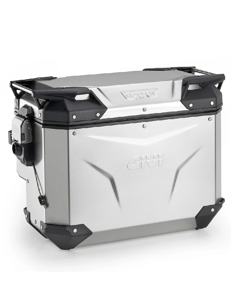 Asymetryczne kufry boczne GIVI Trekker Outback EVO Smart zostały wykonane z solidnego aluminium i są odporne na uszkodzenia mechaniczne. System mocowania MONOKEY® CAM-SIDE gwarantuje stabilność i bezpieczeństwo kufrów podczas jazdy, jednocześnie umożliwiając ich szybki montaż i demontaż.