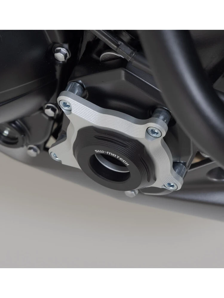 Osłona pokrywy silnika wykonana z wytrzymałego stopu aluminium wysokiej jakości. Elegancka konstrukcja podkreśli charakterny design Twojego motocykla a w przypadku kontaktu z podłożem lub wypadku ochroni osłonięte części silnika przed poważnym uszkodzeniem. Osłona składa się z ramy z czarnego, anodowanego aluminium oraz wymiennej wkładki z anodowanego aluminium w kolorze srebrnym.