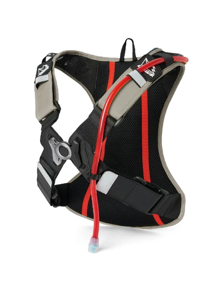 Wyposażony w bukłak Elite o pojemności 3 litrów z zamknięciem typu Slide-Seal, które umożliwia szybkie napełnianie wodą oraz ułatwia dokładne czyszczenie i suszenie. System Plug-n-Play zapewnia łatwe odłączenie rurki bez ryzyka wycieków, a klipsy utrzymują ją na miejscu wzdłuż szelek, ułatwiając dostęp do wody podczas jazdy.