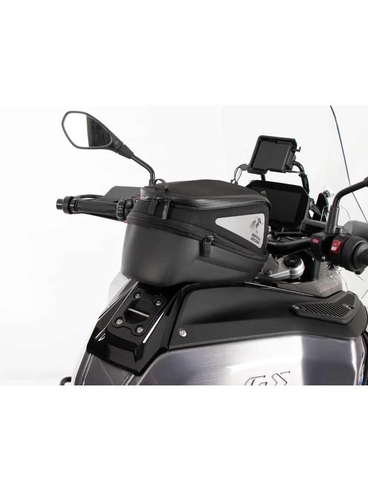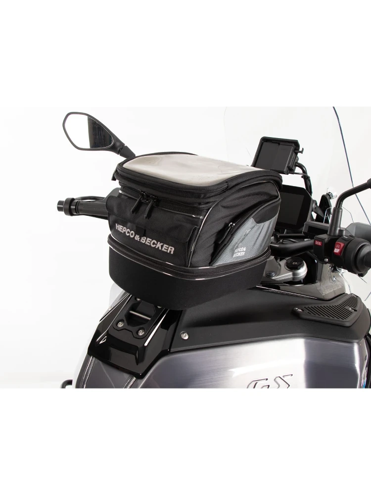 Ogólne funkcje i działanie pozostają takie same. To, co odróżnia mocowanie Basic od mocowania Lock-it, to zmiana z magnetycznego systemu blokowania na system w pełni mechaniczny. Rzeczywisty „metalowy pierścień” specyficzny dla modelu jest taki sam dla obu wersji. Uwaga: Torba na zbiornik z uchwytem Lock-it nie może być umieszczona na pierścieniu zbiornika BASIC i odwrotnie. Uchwyt na zbiornik i pierścień na zbiornik muszą pochodzić z tego samego systemu.