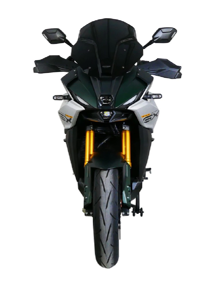 - Szyba jest wyższa od oryginału i pochylona ku górze, co zmniejsza ciśnienie zapewniając relaksującą jazdę
