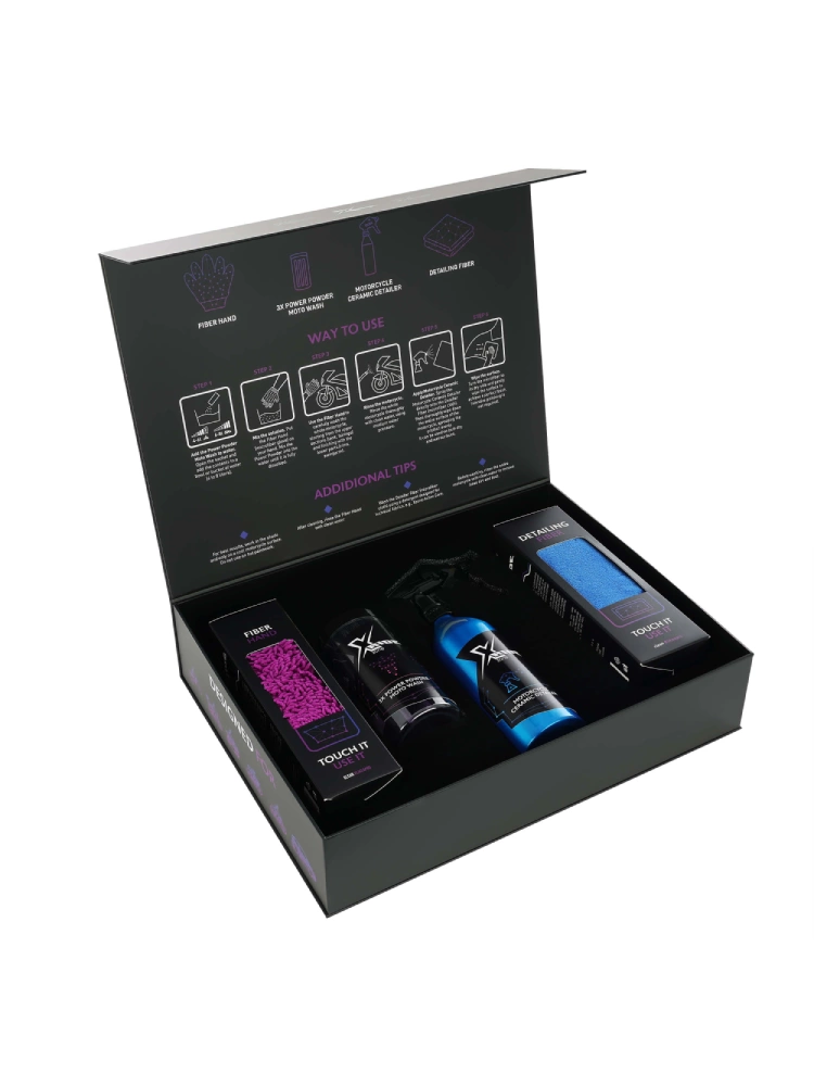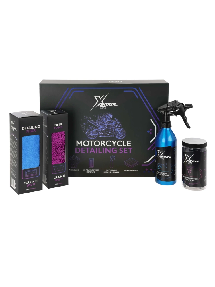 Xzone Ride - Motorcycle Detailing Set to kompletny zestaw kosmetyków i akcesoriów do pielęgnacji motocykla, który umożliwia skuteczne czyszczenie i zabezpieczenie jednośladu we własnym garażu. Zestaw został stworzony zarówno z myślą o osobach początkujących, jak i bardziej doświadczonych motocyklistach, którzy chcą zadbać o wygląd swojej maszyny. Zestaw do pielęgnacji skutecznie usuwa zanieczyszczenia drogowe oraz tworzy warstwę ochronną, która ogranicza osadzanie się kurzu, wilgoci i brudu na powierzchni motocykla.