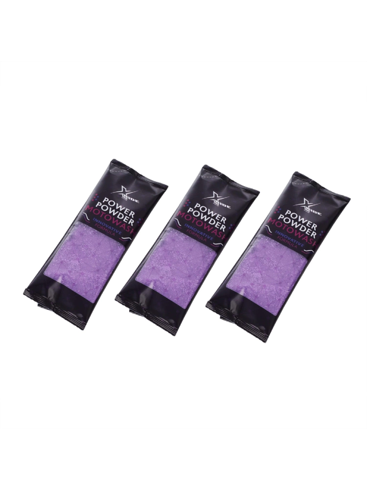 Power Powder Moto Wash to skoncentrowany proszek przeznaczony do przygotowania roztworu czyszczącego do motocykli. Produkt dostępny jest w formie trzech saszetek po 20 gramów, które po zmieszaniu z wodą tworzą aktywną pianę, która umożliwia oczyszczenie powierzchni z typowych zabrudzeń drogowych. Można go bezpiecznie stosować na różnych powierzchniach bez ryzyka o ich uszkodzenie.