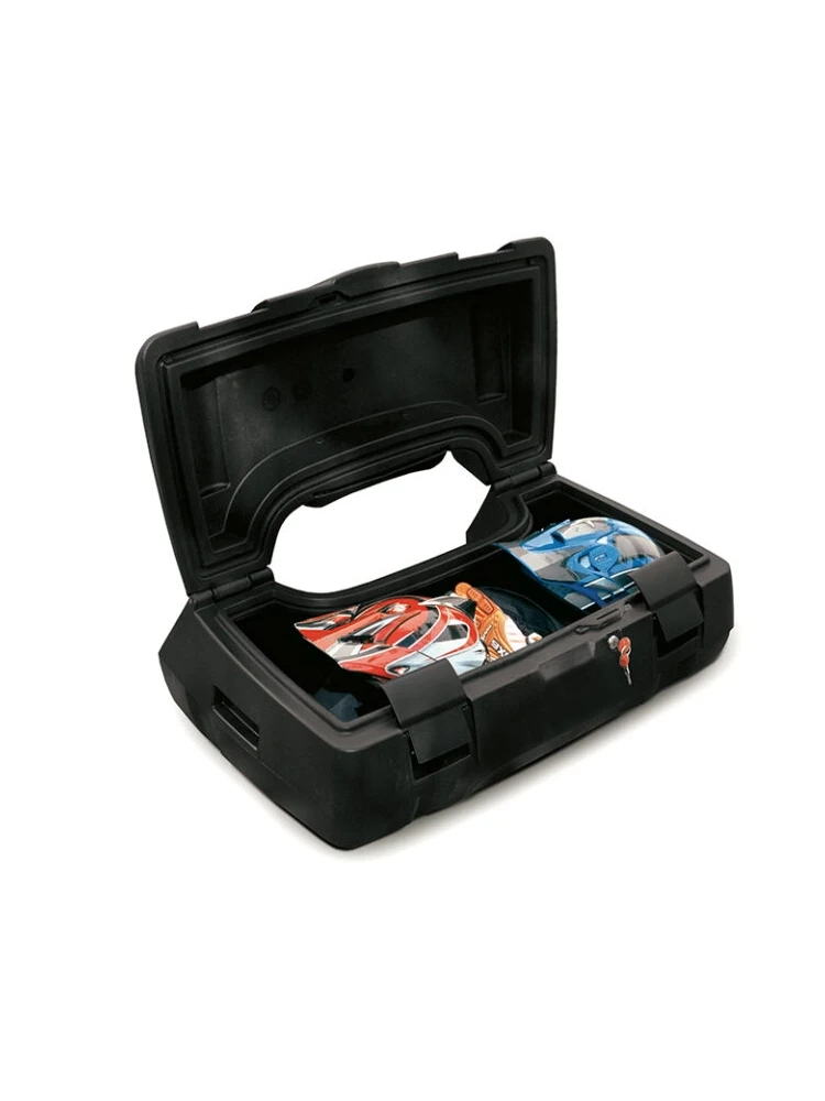 - Pozwala na przechowywanie dwóch kasków motocyklowych oraz różnego rodzaju akcesoriów