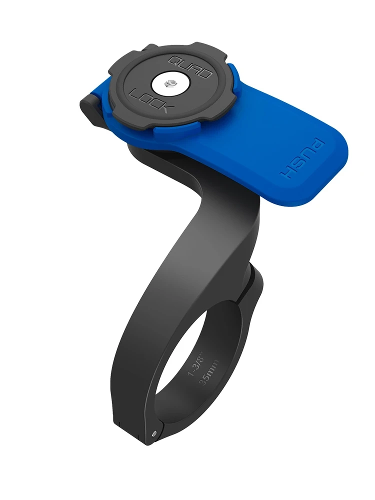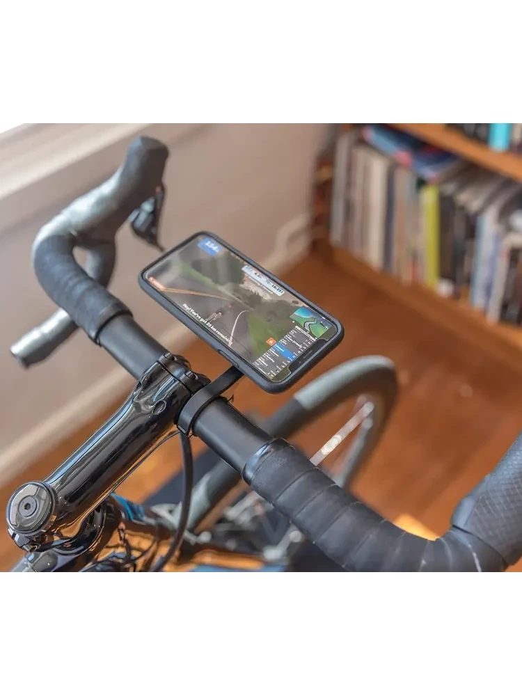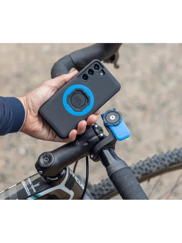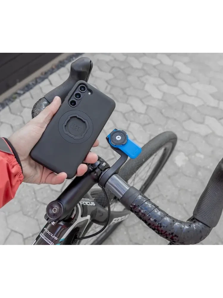 Uchwyt Quad Lock® Out Front Mount to praktyczne rozwiązanie dla rowerzystów, które umożliwia szybkie i bezpieczne zamocowanie smartfona na kierownicy.