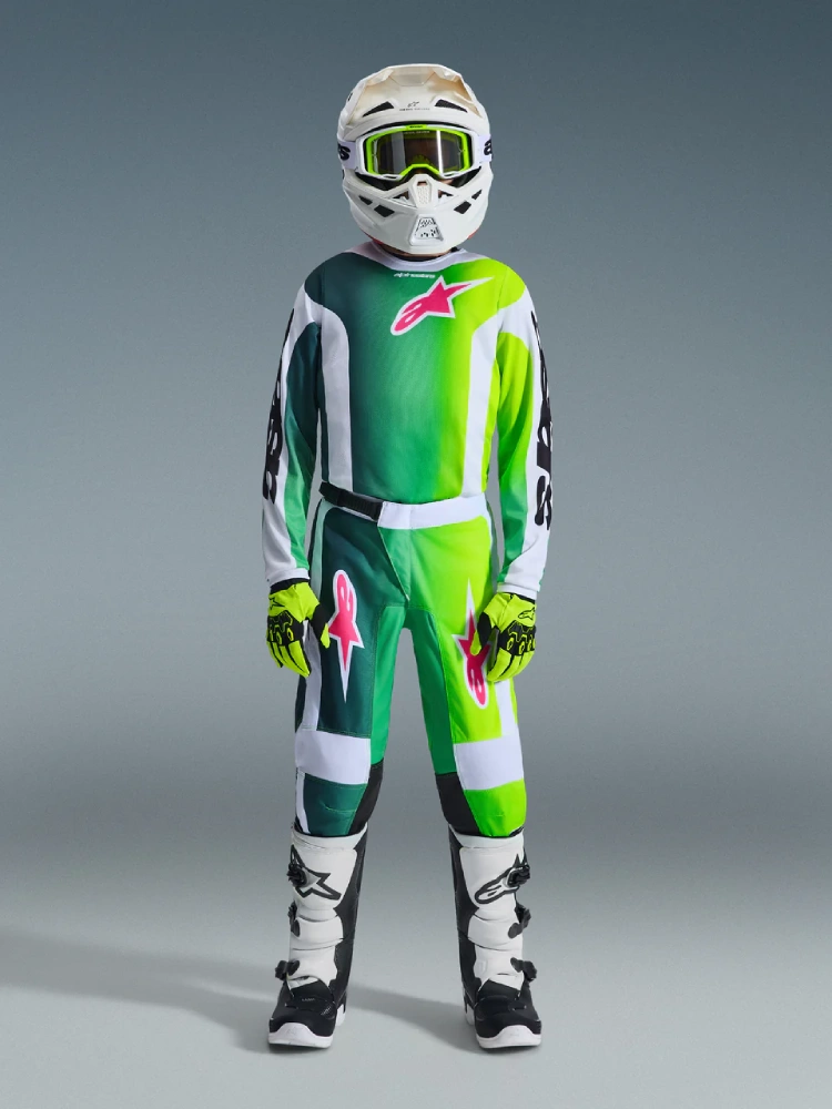 Spodnie cross dziecięce Alpinestars MX Fluid Portl zielono-biało-czarne