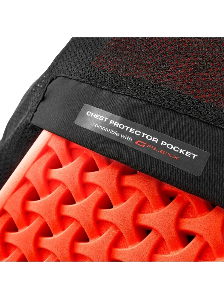 Bezpieczeństwo gwarantują protektory SHIMA GFLEXX Level 2 na barkach i plecach oraz regulowane ochraniacze łokci, a dodatkowo przewidziano miejsce na opcjonalny protektor klatki piersiowej. Wzmocnienia DuoLayer w kluczowych strefach zwiększają ochronę w newralgicznych miejscach.