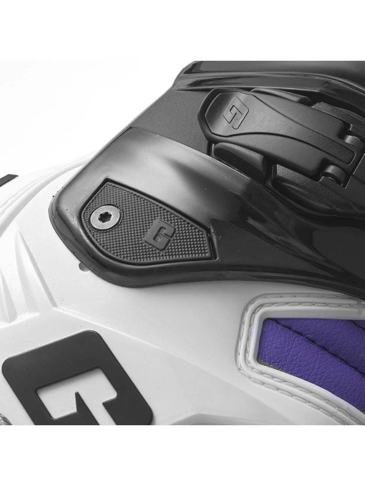 Gearne SG 12 to buty motocyklowe enduro zapewniające świetną ochronę oraz kontrolę. Cholewka wykonana została z najwyższej jakości skóry połączonej z zupełnie nowym, oddychającym materiałem Acronos®, który chroni motocyklistę przed piaskiem oraz kamieniami. Rewolucyjny, dwupoziomowy system zawiasów Dual Stage Pivot System chroni przed urazami i zmiażdżeniem kostki, umożliwiając jednocześnie pełną swobodę ruchów. Gumowa wstawka umieszczona na wewnętrznej części buta chroni przed ciepłem motocykla. Zapięcie składające się z czterech regulowanych klamer pozwala lepiej dopasować obuwie do indywidualnych potrzeb. Wzmocniona zastosowane w obszarze palców ułatwiają operowanie dźwignią zmiany biegów. Protektor umieszczony na pięcie świetnie absorbuje energię powstałą podczas uderzenia. W ramach ochrony zastosowano również demontowany przedni panel, który w razie rozbudowy elementów ochronnych można swobodnie usunąć. Wnętrze butów enduro zaprojektowane zostało w taki sposób, aby jak najbardziej dostosować się do anatomicznej budowy stopy. Innowacyjna wyściółka w przedniej części wykonana została z materiału absorbującego uderzenia. Przednia część natomiast wyposażona została w wentylowaną wkładkę z miękkiej pianki. Gumowa podeszwa zapewnia przyczepność niemal na każdym podłożu. Niepowtarzalny design butów oraz zastosowane rozwiązania sprawiają, że są w pełni gotowe do jazdy.