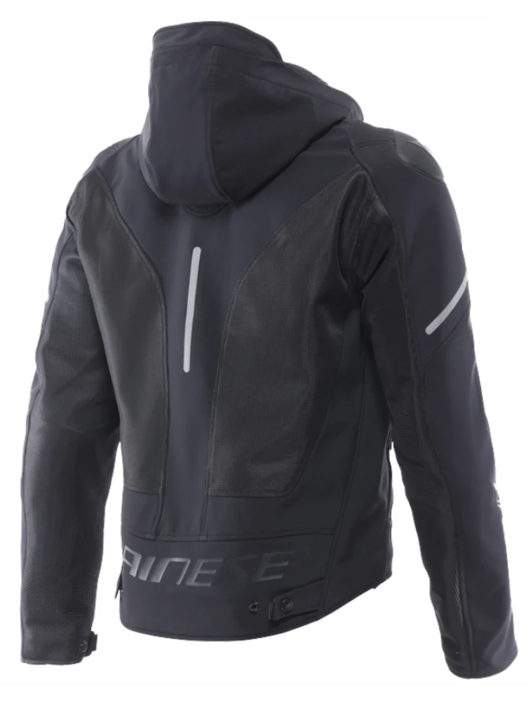 Komfort użytkowania wspierają elementy takie jak oddychająca podszewka z siatki, odpinany kaptur czy regulacje w obrębie mankietów, kołnierza i talii. Kurtka na motocykl Dainese Super Sprint Air Tex wyposażona jest również w praktyczne kieszenie: dwie zewnętrzne oraz jedną wodoodporną wewnętrzną, w której bezpiecznie można przechowywać m.in. dokumenty czy telefon. Dodatkowym atutem jest zamek do spięcia ze spodniami, który zwiększa komfort i stabilność całego zestawu podczas jazdy.