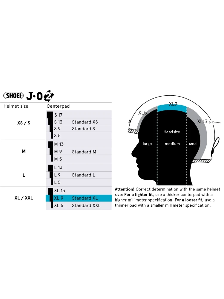 Wkładka centralna Shoei XL9 do kasku J.O2