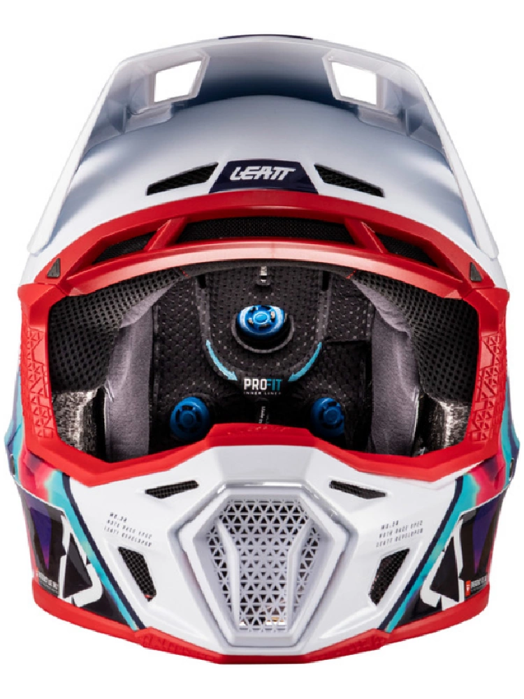 Kask enduro Leatt Moto 8.5 V25 biało-niebiesko-czerwony z goglami czerwono-niebieskimi