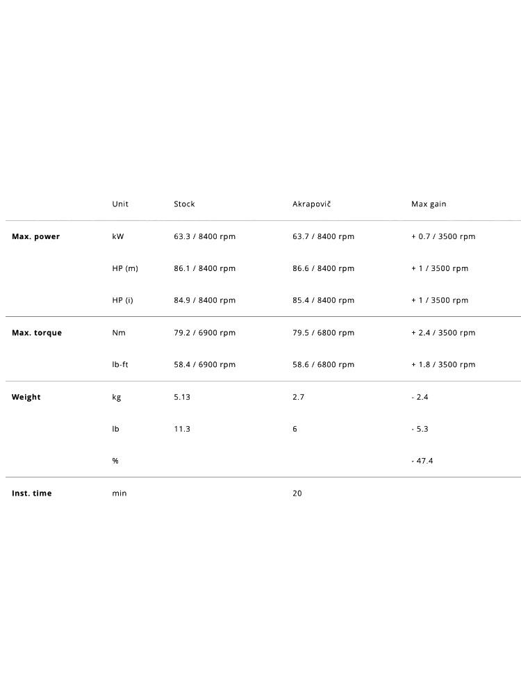 - Moc maksymalna: 63,7 kW @ 8400 rpm (+ 0,7 kW @ 3500 rpm)