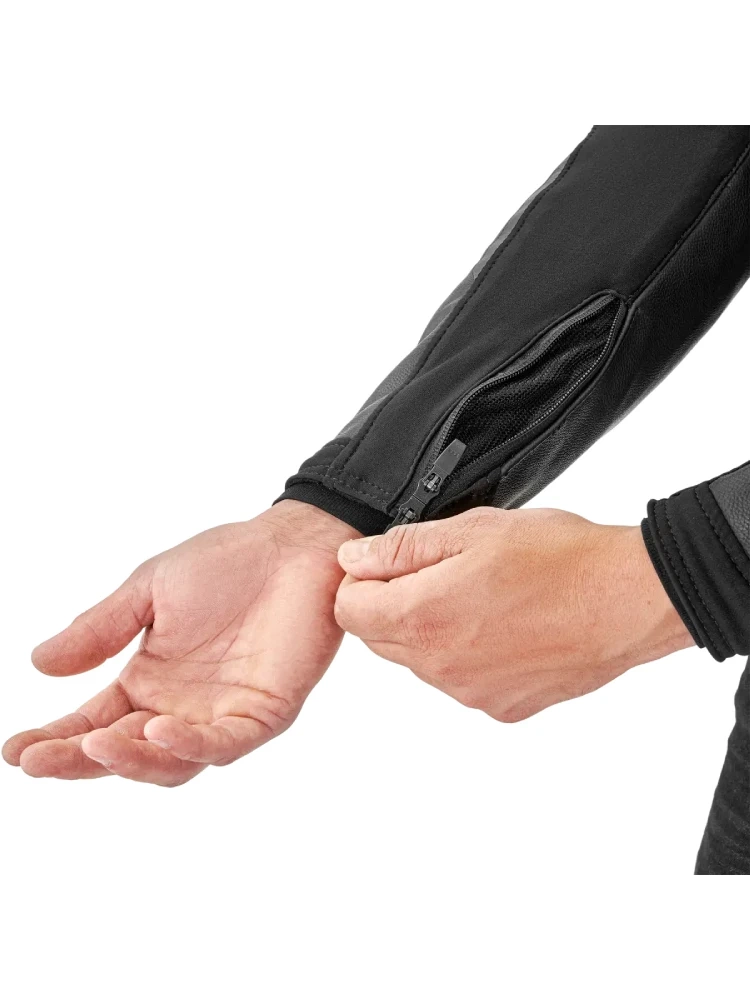 Kurtka motocyklowa skórzana Bandit 2.0 wyposażona jest kompozytowe slidery na barkach oraz w nowe, przewiewne i elastyczne ochraniacze AirForce™ poziom 2. Zabezpieczają one łokcie, ramiona i plecy. Opcjonalnie możesz doposażyć się w dedykowany protektor klatki piersiowej. Dyskretnie rozmieszczone elementy odblaskowe zwiększają Twoją widoczność w słabym świetle.