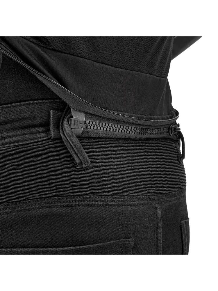 Za pomocą krótkiego lub długiego zamka błyskawicznego połączysz kurtkę ze spodniami motocyklowymi Shimy. Kurtka ma regularny krój, który za pomocą rzepów w pasie dopasujesz do swoich potrzeb. Cenne rzeczy bezpiecznie przechowasz w wodoodpornej kieszeni wewnętrznej.