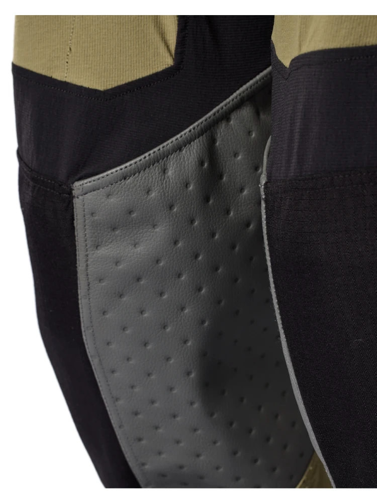 Wewnętrzne skórzane wstawki zwiększają przyczepność w kontakcie z motocyklem, a brak zbędnej podszewki redukuje wagę i poprawia wentylację.