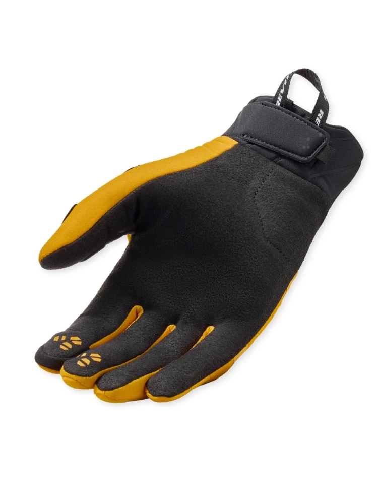 Dłoń wzmocniono odpornym na ścieranie materiałem Clarino®, co zwiększa trwałość rękawic i zapewnia pewny chwyt kierownicy.