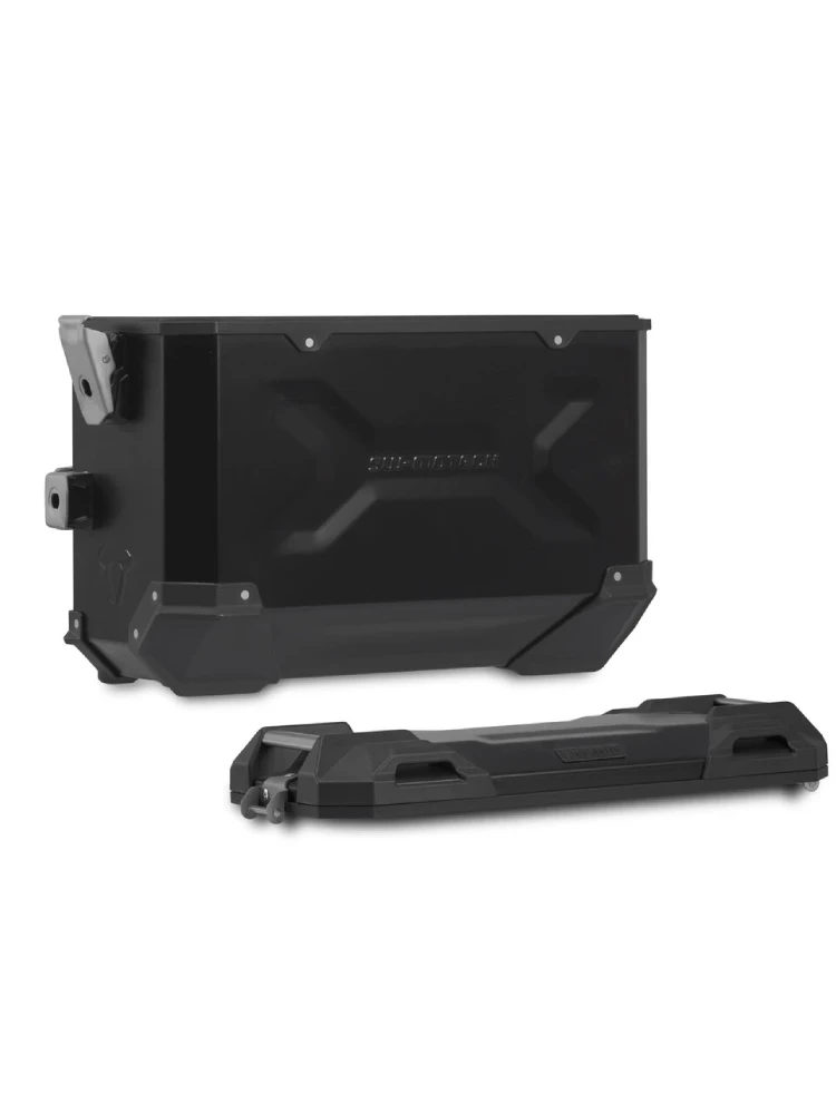 Wytrzymałe aluminiowe kufry TRAX ADV sprawiają, że czujesz się jak w domu na każdym odcinku drogi: wytłoczone wzory zwiększają stabilność spawanego aluminium o grubości 1,5 milimetra. Całkowicie zdejmowana pokrywa z uchwytami wykonanymi z anodyzowanego aluminium oraz zapięcie błyskawiczne ułatwiają załadunek i rozładunek bagażu motocyklowego; fazowana krawędź boczna zapewnia duży prześwit podczas pokonywania zakrętów. Stelaż i wielkość kufrów są idealnie dopasowane do tylnego kształtu i układu wydechowego motocykla. Przy rozwoju TRAX ADVENTURE pojawiło się następujące wyzwanie. Zbudować kufry, które pokonają wszystkie przeszkody motocyklowej codzienności, lekkie i łatwe w obsłudze, po prostu dobre: od praktycznego zamka błyskawicznego, przez zdejmowalną pokrywę, po ergonomiczny uchwyt. TRAX ADVENTURE łączą wysoką jakość z niską wagą. Ważą tylko od 4,6kg do 5,4 kg, czyli należą do grupy najlżejszych kufrów w swojej klasie.