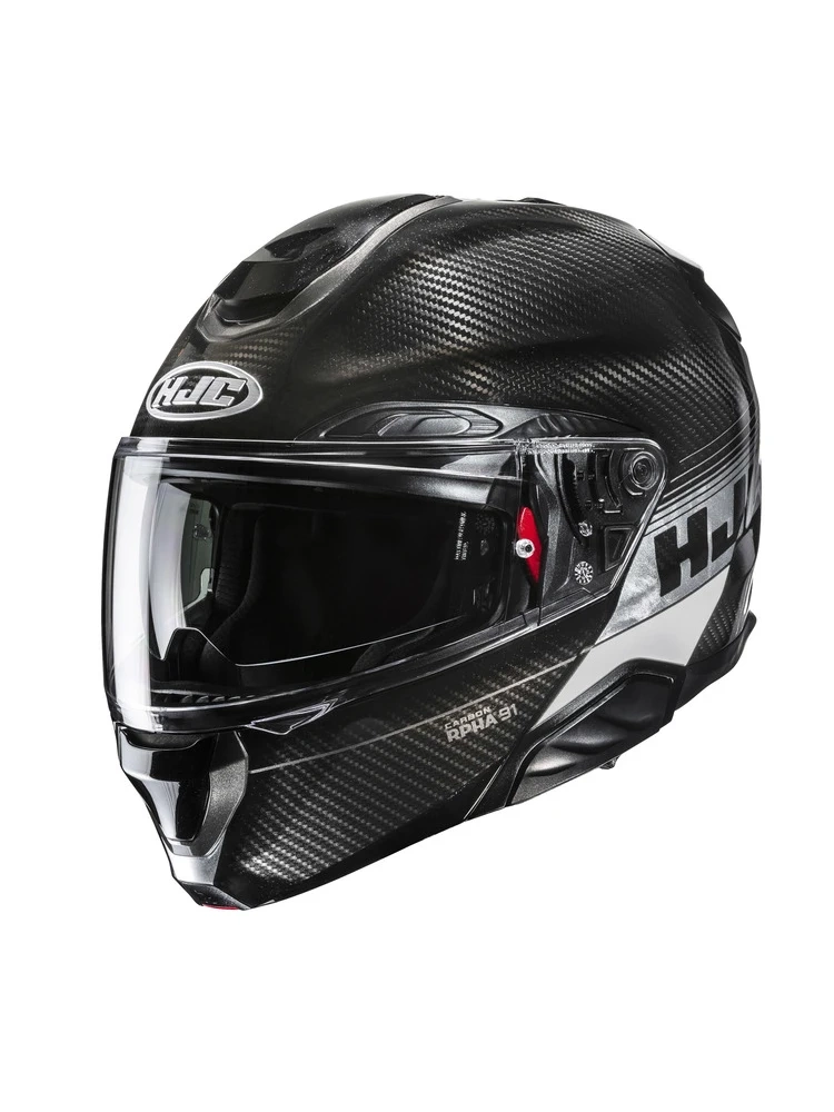 RPHA 91 Carbon to opracowany przez koreańską markę HJC kask szczękowy, bazujący na dobrze znanym modelu RPHA 90 S. Oferuje idealne połączenie wytrzymałości z doskonałą absorpcją siły uderzenia, dzięki zastosowaniu innowacyjnego kompozytu PIM (Premium Integrated Matrix) Evo Carbon. Dodatkowym atutem tego kompozytu jest lekkość, która przekłada się na komfort użytkowania podczas długich wypraw motocyklowych. W fazie projektowania skorupy skorzystano również z komputerowej technologii CAD, która zapewnia lepsze dopasowanie. Kask szczękowy RPHA 91 Carbon posiada homologację ECE 22-06, co oznacza, że kask ten wykonano zgodnie z europejskimi standardami bezpieczeństwa. Wydajny system wentylacji, składający się z pięciu kanałów wlotowych i dwóch kanałów wylotowych zapewnia perfekcyjną cyrkulację powietrza. Antybakteryjna wyściółka oraz poduszki policzkowe są w pełni wyjmowane i nadają się do prania. W kasku zastosowano system awaryjnego wyjmowania poduszek policzkowych, aby ułatwić ratownikom medycznym dostęp do poszkodowanego motocyklisty. Projektanci kasku szczękowego RPHA 91 Carbon przystosowali konstrukcję pod kątem komfortowej jazdy w okularach korekcyjnych. W grupowych wycieczkach komunikacja wskoczy na zupełnie inny poziom, dzięki możliwości montażu opcjonalnego interkomu motocyklowego HJC Smart II (brak w zestawie). Kask szczękowy HJC RPHA 91 Carbon może być użytkowany w dwóch specyfikacjach - z podniesioną lub opuszczoną szczęką, dzięki homologacji P/J.