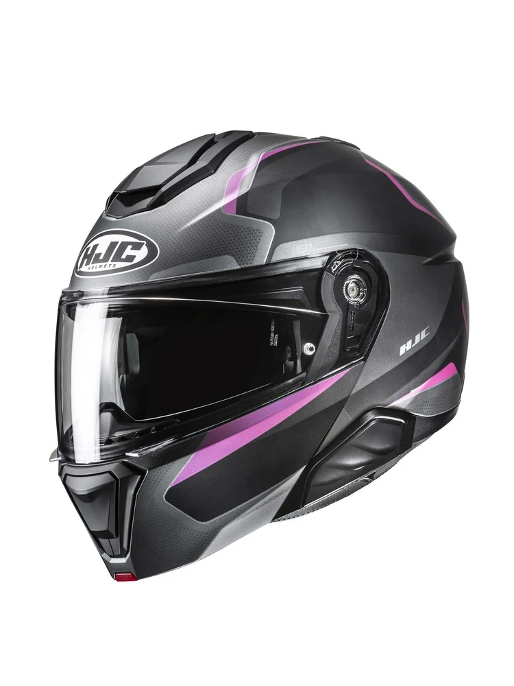 Kask szczękowy i91 to turystyczny model zaprojektowany przez techników marki HJC, który łączy innowacyjne rozwiązania, komfort użytkowania oraz wysoki poziom ochrony. Kask charakteryzuje się poliwęglanową skorupą wykonaną przy zastosowaniu technologii CFD, dzięki czemu powstał lekki, aerodynamiczny i bezpieczny produkt. Model i91 posiada podwójną homologację co oznacza, że można bezpiecznie jeździć w kasku z zamkniętą i otwartą szczęką. Zaletą jest łatwy i prosty w obsłudze system podnoszenia szczęki. Wizjer kasku jest odporny na zarysowania oraz zapewnia szerokie pole widzenia, a zintegrowana blenda przeciwsłoneczna chroni motocyklistę przed oślepiającym słońcem. Strategicznie rozmieszczona wentylacja składająca się z górnego i dolnego wlotu oraz jednego tylnego wylotu to połączenie doskonałej wymiany powietrza z niskim poziomem hałasu. Kask szczękowy i91 wyposażony jest w bezpieczne zapięcie Microlock, które minimalizuje ryzyko niekontrolowanego odpięcia. Wnętrze kasku posiada wyjmowaną i antybakteryjną wyściółkę, która pozwala na odprowadzenie wilgoci oraz pochłania nieprzyjemne zapachy. Kask przystosowany jest dla osób noszących okulary oraz ma możliwość zamontowania opcjonalnego interkomu motocyklowego HJC Smart.