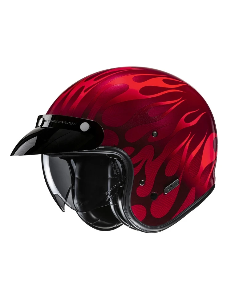 HJC V31 to wykonany w stylu retro kask otwarty. Składa się z zaawansowanej skorupy, która została wykonana włókna szklanego. Zastosowanie tego rodzaju materiału nadaje konstrukcji lekkość i wytrzymałość. Warto zauważyć, że skorupa produkowana jest w trzech rozmiarach, co w zupełności wystarcza na komfortowy dobór idealnego rozmiaru kasku do głowy użytkownika. Kask posiada wizjer w wersji przyciemnianej, a także zintegrowaną blendę przeciwsłoneczną z powłoką Anti-Scratch (odporność na zarysowania). Spoglądając na wewnętrzną wyściółkę nie mamy wątpliwości, że kask otwarty V31 reprezentuje styl vintage. Opracowana na bazie skóry i zamszu wyściółka jest w pełni wyjmowana, dzięki czemu dbanie o higienę jest bardzo proste i przyjemne. Warto dodać, że konstrukcja jest przystosowana do montażu opcjonalnego daszka (brak w zestawie). Model V31 przystosowano dla motocyklistów noszących okulary korekcyjne. Umieszczone wewnątrz kasku specjalne kieszenie pozwalają na montaż komunikatora drogowego, w postaci interkomu motocyklowego z serii HJC Smart. W celu zwiększenia poziomu bezpieczeństwa w kasku otwartym V31 zastosowano najbezpieczniejsze zapięcie, dostępne na rynku motocyklowym, czyli zapięcie typu DD (Double-D).