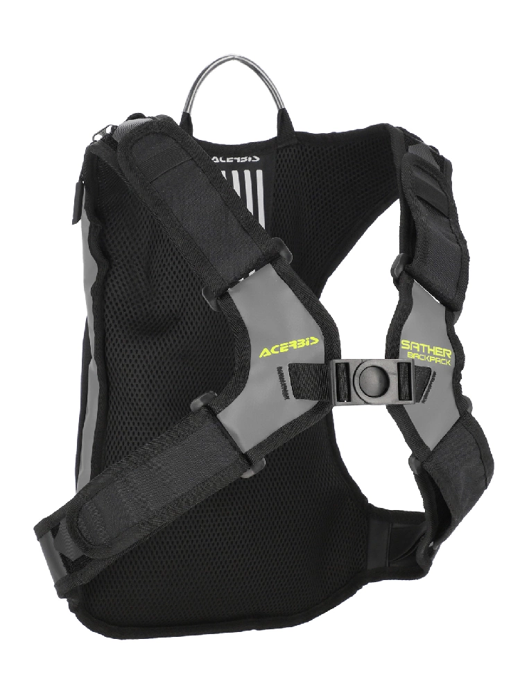 Plecak enduro Acerbis Sather został zaprojektowany specjalnie do jazdy off-road i wypraw w terenie. Wyposażony w bukłak z rurką do picia umożliwia stały dostęp do wody podczas jazdy, a innowacyjny system mocowania „X” Closure System eliminuje efekt bujania i zapewnia stabilne dopasowanie do ciała.