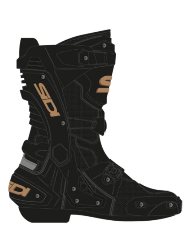 Sidi Rex Air to innowacyjny, sportowy model butów motocyklowych wyposażony w najnowsze technologie, zwiększające bezpieczeństwo, zapewniające niezrównaną wygodę oraz umożliwiające świetne dopasowanie do indywidualnego motocyklisty. Konstrukcja buta opiera się na technologii Technomicro ze strategicznie rozmieszczonymi, perforowanymi panelami pozwalającymi na swobodną cyrkulację powietrza. Technologia ta wykorzystuje kompozyt mikrofibry wykonany z bardzo cienkich włókien, dzięki którym sam but jest odporny na wszelkiego rodzaju przetarcia oraz odznacza się wyjątkową lekkością i gramaturą. Wnętrze wyściełane zostało miękkim w dotyku nylonem, który sprawnie odprowadza zgromadzoną w bucie wilgoć. Opatentowany system zapięć Tecno-3 Push składa się z trzech klamer z zamknięciami żyłkowymi, regulowanymi za pomocą dedykowanych przycisków luzujących lub wywierających większy nacisk na klamrę w celu lepszego dopasowania. Wykonane z nylonu i wzmocnione włóknem szklanym ortezy kostki stabilizują but i zapobiegają skręceniu stawu poprzez ograniczenie ruchów na boki. Dodatkowe otwory wentylacyjne obsługiwane są przy pomocy przycisku umieszczonego pod ortezą. Wymienne slidery oraz ochraniacze pięty zwiększają poziom bezpieczeństwa podczas ewentualnej wywrotki. Elastyczne panele w przedniej i tylnej części obuwia zwiększają mobilność. Wykonana z gumy podeszwa tłumi drgania i zabezpiecza stopę przed ześlizgnięciem się z podnóżka.