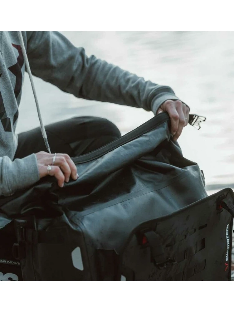 Torby są montowane na bagażniku PRO lub za pomocą pętli na ogonie. Podobnie jak wodoodporne torby na zbiornik, SysBag L WP są wykonane z podstawy TPU i komponentów EVA. Oba materiały są zgrzewane termicznie i łączone ze sobą, tworząc zwartą całość, dzięki czemu torba jest całkowicie wodoodporna. Modele SysBag WP są niezawodnymi towarzyszami bezkompromisowych przygód motocyklowych. Dzięki starannemu doborowi materiałów i starannemu wykonaniu torby są całkowicie wodoodporne i niezwykle wytrzymałe.
