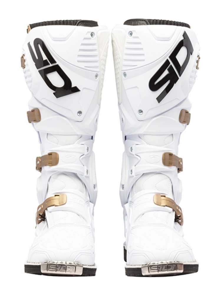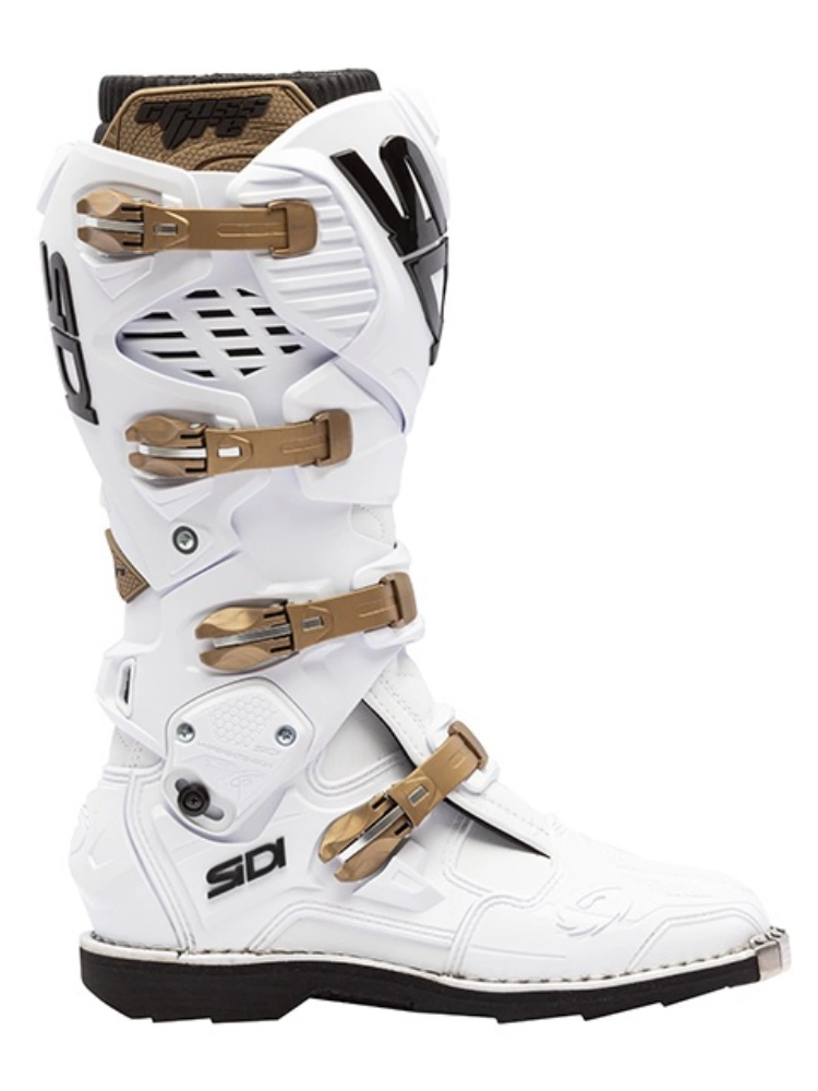 Sidi Crossfire 3 to technologicznie zaawansowane buty motocyklowe które świetnie sprawdzą się podczas off'roadowej jazdy w terenie. Wykonane są z odpornej na przetarcia, przebicia i rozwarstwienia syntetycznej skóry Lorica. Materiał ten jest bardzo lekki i miękki dzięki czemu znacznie zwiększa komfort użytkowania obuwia. Wewnętrzna część z materiału Cambrelle połączona została z oddychającą teflonową siateczką, która umożliwia sprawne odprowadzanie wilgoci zapobiegając tym samym powstawaniu nieprzyjemnych zapachów. Crossfire 3 wykorzystuje cztery klamry mikrometryczne z jednym punktem mocowania, dzięki czemu w prosty sposób można dostosować go do indywidualnych potrzeb w obszarze stopy i goleni. System Hyper Extension Block zapobiega nadmiernemu przeprostowi kostki oraz ścięgna Achillesa, w pozycji gdy stopa zgięta jest do przodu lub do tyłu zapewniając tym samym wysoki poziom bezpieczeństwa. Wymienna płytka wykonana z PU i gumy chroni nogę przed poparzeniami od motocykla. Ochronę zapewniają anatomicznie ukształtowane protektory pięt, panel chroniący śródstopie oraz sztywne wzmocnienia palców zakończone metalową płytką. Podeszwa wykonana została z odpornej na działanie olejów, antywstrząsowej gumy.