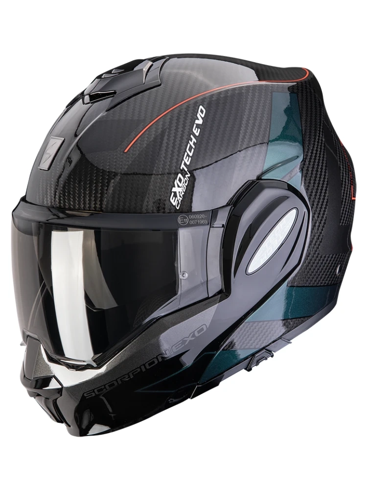 Scorpion Exo-Tech Evo Carbon to kask motocyklowy szczękowy, który zaprojektowano i stworzono z myślą o entuzjastach wypraw na motocyklu.
