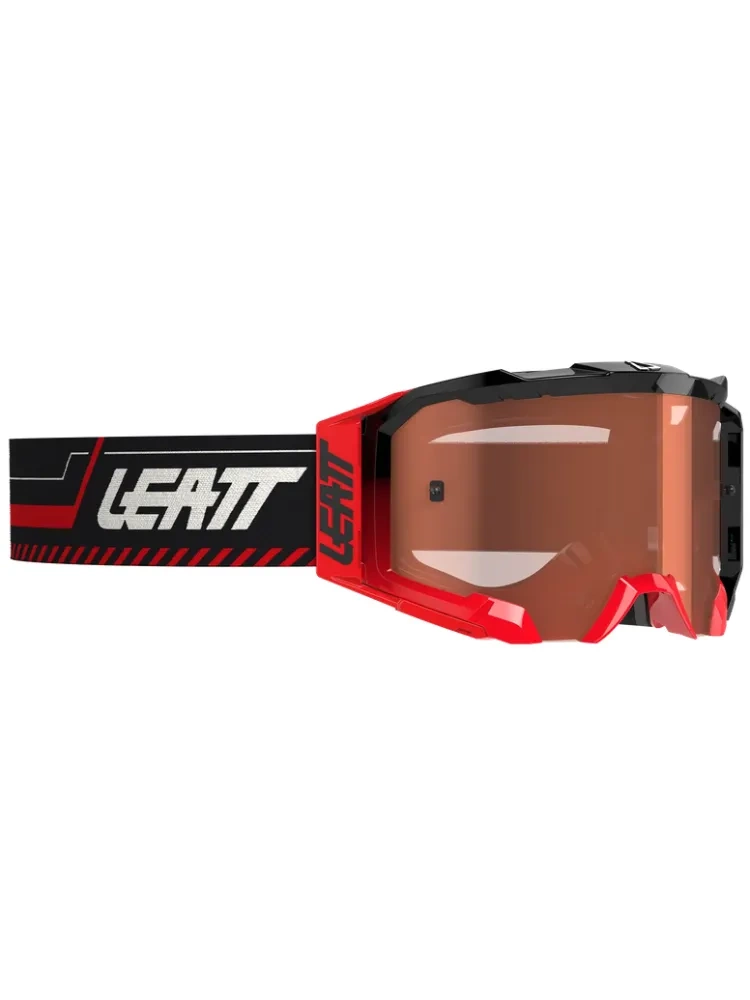 Gogle motocyklowe Leatt Velocity 5.5 z przyciemnianą różową szybą, czarno-czerwone
