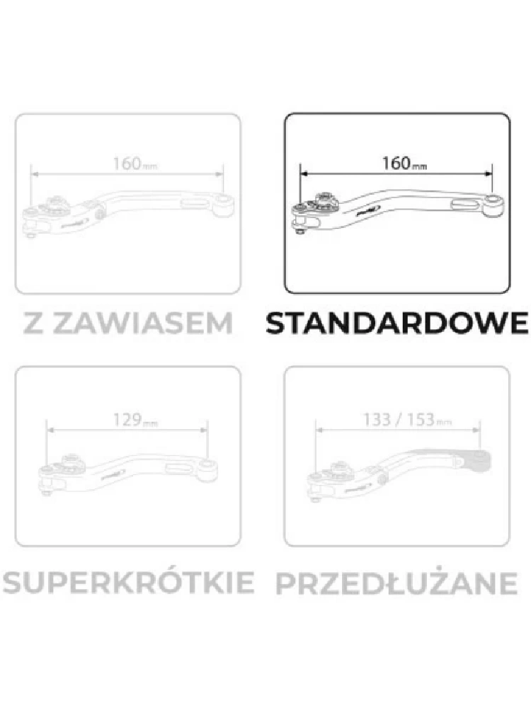 - W komplecie: dźwignia hamulca, dźwignia sprzęgła, odpowiednie do motocykla mocowania