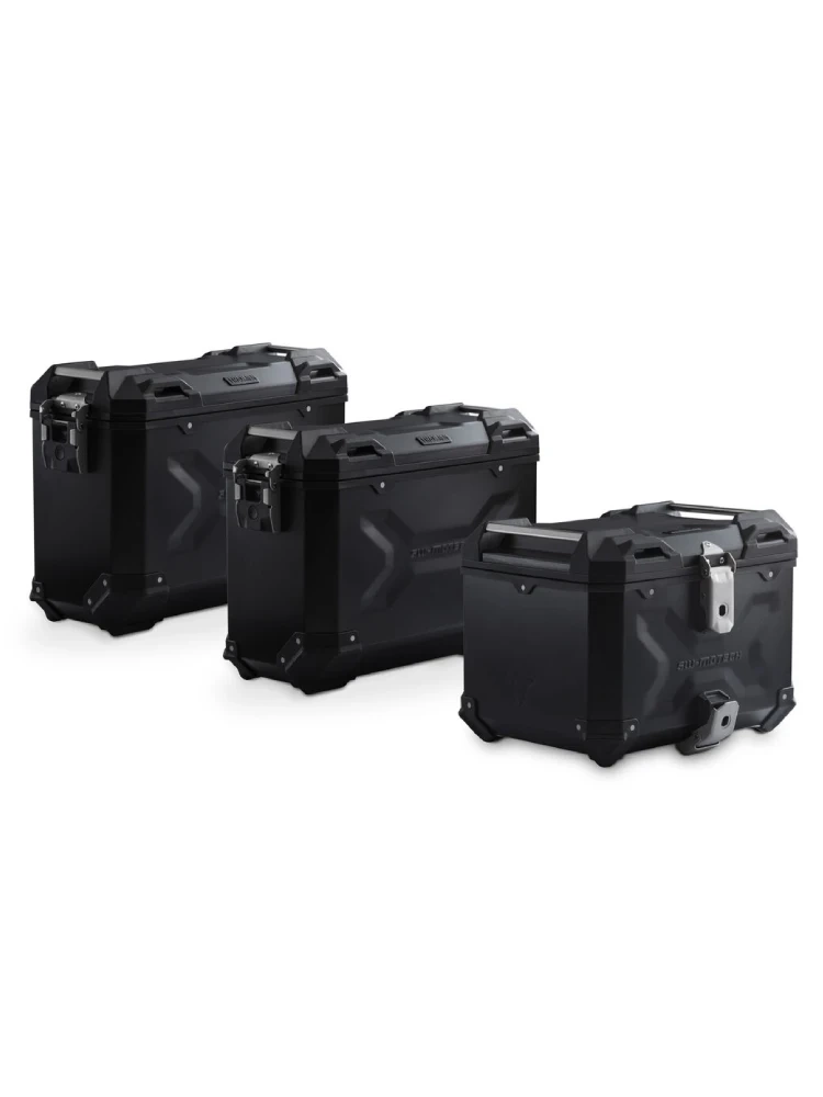 Zestaw: kufry boczne + kufer centralny TRAX ADV + stelaże SW-Motech KTM (wybrane modele) czarne [poj.: 2 x 37l + 38l]