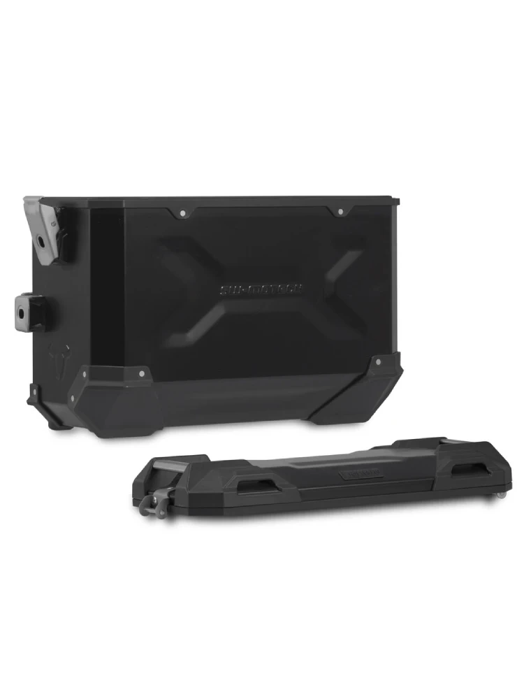 Wytrzymałe aluminiowe kufry TRAX ADV sprawiają, że czujesz się jak w domu na każdym odcinku drogi: wytłoczone wzory zwiększają stabilność spawanego aluminium o grubości 1,5 milimetra. Całkowicie zdejmowana pokrywa z uchwytami wykonanymi z anodyzowanego aluminium oraz zapięcie błyskawiczne ułatwiają załadunek i rozładunek bagażu motocyklowego; fazowana krawędź boczna zapewnia duży prześwit podczas pokonywania zakrętów. Stelaż i wielkość kufrów są idealnie dopasowane do tylnego kształtu i układu wydechowego motocykla. Przy rozwoju TRAX ADVENTURE pojawiło się następujące wyzwanie. Zbudować kufry, które pokonają wszystkie przeszkody motocyklowej codzienności, lekkie i łatwe w obsłudze, po prostu dobre: od praktycznego zamka błyskawicznego, przez zdejmowalną pokrywę, po ergonomiczny uchwyt. TRAX ADVENTURE łączą wysoką jakość z niską wagą. Ważą tylko od 4,6kg do 5,4 kg, czyli należą do grupy najlżejszych kufrów w swojej klasie.