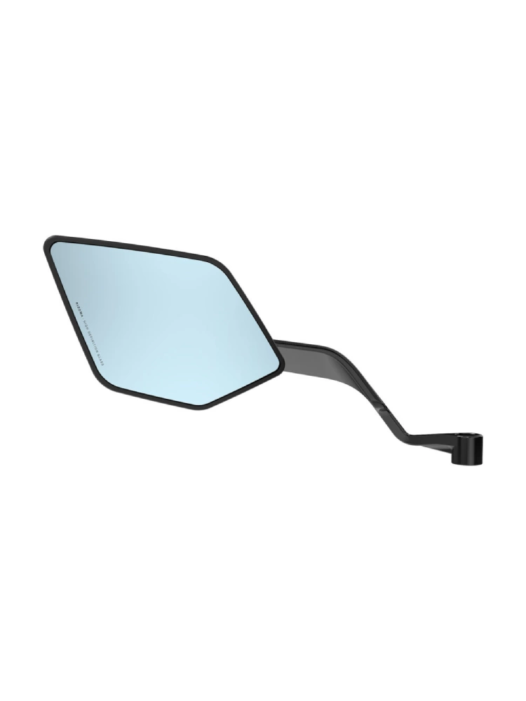 - Wypukła geometria lusterka zwiększa pole widzenia w porównaniu z klasycznym szkłem płaskim.