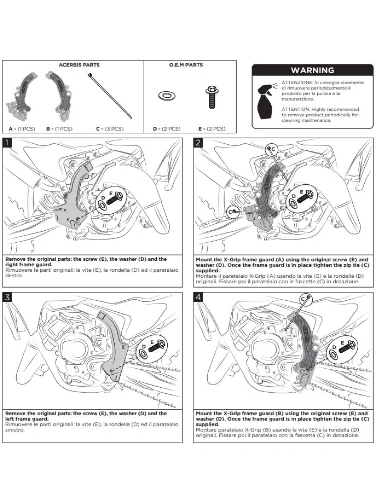 Osłony ramy Acerbis X-Grip KTM 65 SX/ Husqvarna TC 65 (24-) białe