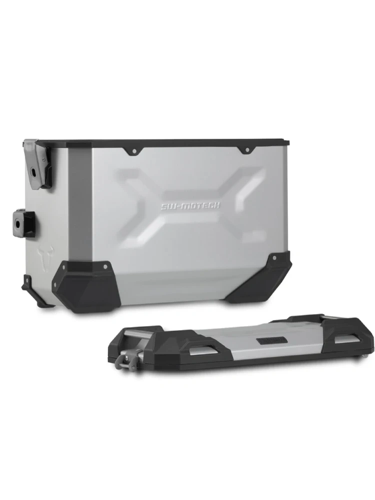 Wytrzymałe aluminiowe kufry TRAX ADV sprawiają, że czujesz się jak w domu na każdym odcinku drogi: wytłoczone wzory zwiększają stabilność spawanego aluminium o grubości 1,5 milimetra. Całkowicie zdejmowana pokrywa z uchwytami wykonanymi z anodyzowanego aluminium oraz zapięcie błyskawiczne ułatwiają załadunek i rozładunek bagażu motocyklowego; fazowana krawędź boczna zapewnia duży prześwit podczas pokonywania zakrętów. Stelaż i wielkość kufrów są idealnie dopasowane do tylnego kształtu i układu wydechowego motocykla. Przy rozwoju TRAX ADVENTURE pojawiło się następujące wyzwanie. Zbudować kufry, które pokonają wszystkie przeszkody motocyklowej codzienności, lekkie i łatwe w obsłudze, po prostu dobre: od praktycznego zamka błyskawicznego, przez zdejmowalną pokrywę, po ergonomiczny uchwyt. TRAX ADVENTURE łączą wysoką jakość z niską wagą. Ważą tylko od 4,6kg do 5,4 kg, czyli należą do grupy najlżejszych kufrów w swojej klasie.