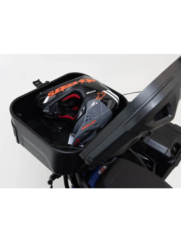 Kufer centralny DUSC Sw-motech o pojemności 41 litrów to idealne rozwiązanie podczas każdej motocyklowej wycieczki. Zaprojektowany z myślą o łatwej obsłudze i niezawodnym transporcie bagażu, kufer DUSC L zapewnia wystarczająco dużo miejsca mieszcząc bez problemu kask motocyklowy. Jego pojemność wynosząca 41 litrów pozwala na bezproblemowe przechowanie niezbędnych rzeczy podczas podróży. DUSC L wyróżnia się wyrafinowanym projektem oraz interakcją różnych materiałów, co nadaje mu wyjątkową wytrzymałość i jednocześnie utrzymuje stosunkowo niską wagę. Dzięki temu, nawet po zapakowaniu kufra do pełna, nie musisz martwić się o nadmierne obciążenie motocykla. Montaż kufra DUSC L na bagażniku jest niezwykle prosty i intuicyjny. Wystarczy umieścić kufer na wcześniej zamontowanych punktach mocowania, a następnie użyć systemu blokującego, aby go bezpiecznie zamocować. Dzięki takiemu rozwiązaniu, montaż i demontaż kufra jest szybkie i bezproblemowe. Wielokrotnie przetestowany w różnych warunkach, DUSC L wykazał się niezawodnością, utrzymując swoją pozycję na stelażu nawet w trakcie silnych wibracji. Bez względu na teren, na którym się poruszasz, możesz być pewien, że kufer centralny DUSC L będzie nie tylko bezpiecznym miejscem na przechowanie Twoich rzeczy, ale również niezawodnym towarzyszem każdej motocyklowej przygody.