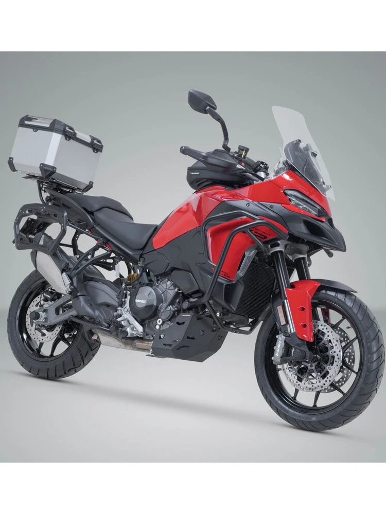 Zestaw: kufer centralny srebrny TRAX ADV + stelaż Adventure-rack SW-Motech Ducati Multistrada V2/ S (12,13,14) (24-) [poj.: 38l]