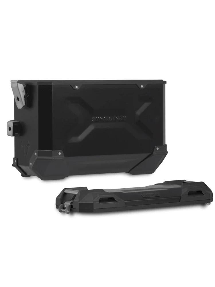 Wytrzymałe aluminiowe kufry TRAX ADV sprawiają, że czujesz się jak w domu na każdym odcinku drogi: wytłoczone wzory zwiększają stabilność spawanego aluminium o grubości 1,5 milimetra. Całkowicie zdejmowana pokrywa z uchwytami wykonanymi z anodyzowanego aluminium oraz zapięcie błyskawiczne ułatwiają załadunek i rozładunek bagażu motocyklowego; fazowana krawędź boczna zapewnia duży prześwit podczas pokonywania zakrętów. Stelaż i wielkość kufrów są idealnie dopasowane do tylnego kształtu i układu wydechowego motocykla. Przy rozwoju TRAX ADVENTURE pojawiło się następujące wyzwanie. Zbudować kufry, które pokonają wszystkie przeszkody motocyklowej codzienności, lekkie i łatwe w obsłudze, po prostu dobre: od praktycznego zamka błyskawicznego, przez zdejmowalną pokrywę, po ergonomiczny uchwyt. TRAX ADVENTURE łączą wysoką jakość z niską wagą. Ważą tylko od 4,6kg do 5,4 kg, czyli należą do grupy najlżejszych kufrów w swojej klasie.