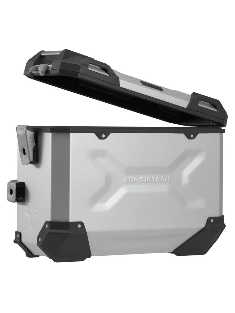 Wytrzymałe aluminiowe kufry TRAX ADV sprawiają, że czujesz się jak w domu na każdym odcinku drogi: wytłoczone wzory zwiększają stabilność spawanego aluminium o grubości 1,5 milimetra. Całkowicie zdejmowana pokrywa z uchwytami wykonanymi z anodyzowanego aluminium oraz zapięcie błyskawiczne ułatwiają załadunek i rozładunek bagażu motocyklowego; fazowana krawędź boczna zapewnia duży prześwit podczas pokonywania zakrętów. Stelaż i wielkość kufrów są idealnie dopasowane do tylnego kształtu i układu wydechowego motocykla. Przy rozwoju TRAX ADVENTURE pojawiło się następujące wyzwanie. Zbudować kufry, które pokonają wszystkie przeszkody motocyklowej codzienności, lekkie i łatwe w obsłudze, po prostu dobre: od praktycznego zamka błyskawicznego, przez zdejmowalną pokrywę, po ergonomiczny uchwyt. TRAX ADVENTURE łączą wysoką jakość z niską wagą. Ważą tylko od 4,6kg do 5,4 kg, czyli należą do grupy najlżejszych kufrów w swojej klasie.