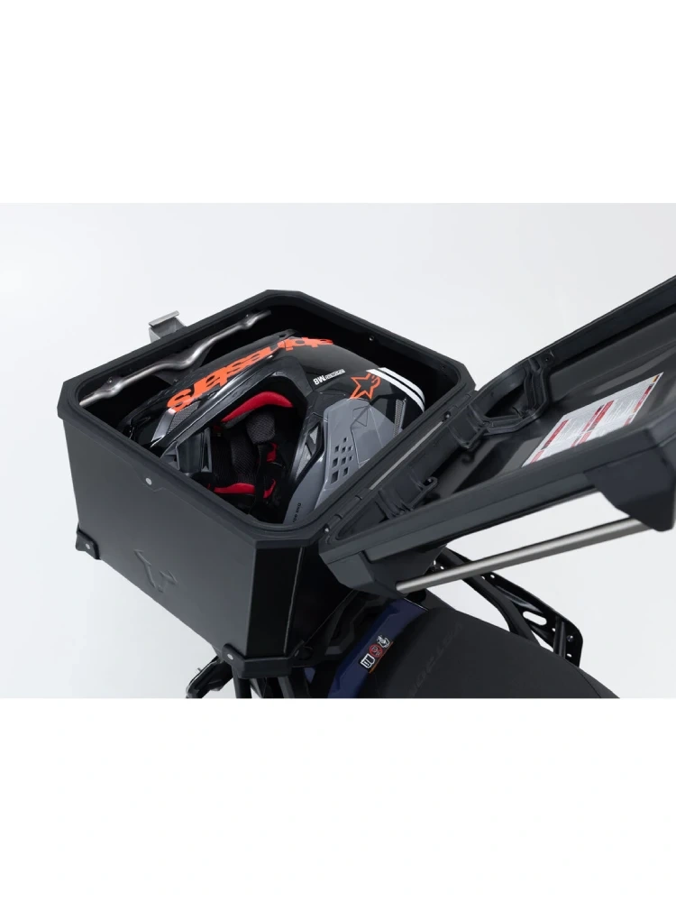 Kompletny zestaw, czyli wszystkie produkty pod jednym indeksem za pomocą których zamontujesz kufer centralny na swoim motocyklu. W skład tego zestawu wchodzą wszystkie produkty, tj.: kufer centralny TraX ADV, zamki do kufrów, płyta adaptacyjna, dedykowany do motocykla stelaż Street-Rack. Przy rozwoju TraX ADV pojawiło się następujące wyzwanie. Zbudować kufry, które pokonają wszystkie przeszkody motocyklowej codzienności, lekkie i łatwe w obsłudze, po prostu dobre: od praktycznego zamka błyskawicznego, przez zdejmowalną pokrywę, po ergonomiczny uchwyt. TraX ADV łączą wysoką jakość z niską wagą. Ważą tylko od 4,6kg do 5,4 kg, czyli należą do grupy najlżejszych kufrów w swojej klasie.