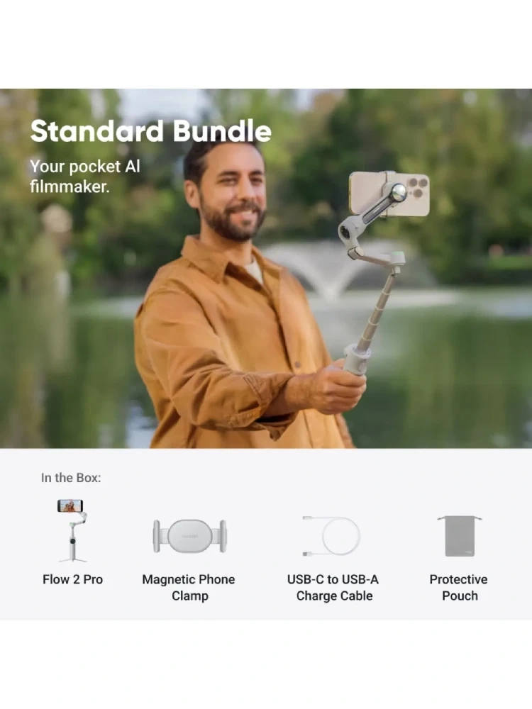 - Tryb fotografowania solo - wystarczy podnieść rękę, aby rozpocząć sledzenie i nagrywanie - konieczne jest sparowanie smartfona z wbudowanych lusterkiem do selfie w urządzeniu Flow 2 Pro