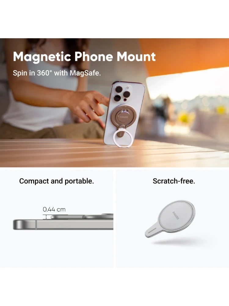 • Kompatybilność z mikrofonem Insta360 Mic Air (sprzedawany osobno). W celu użycia mikrofonu należy także dokupić oddzielnie nadajnik i odbiornik
