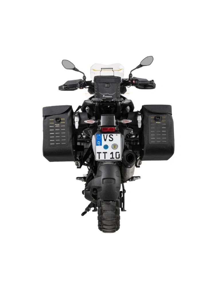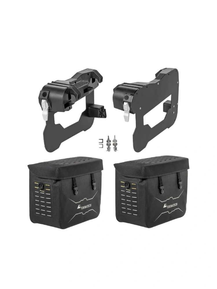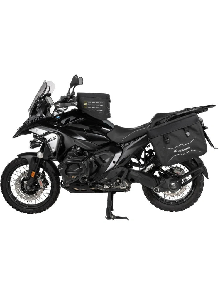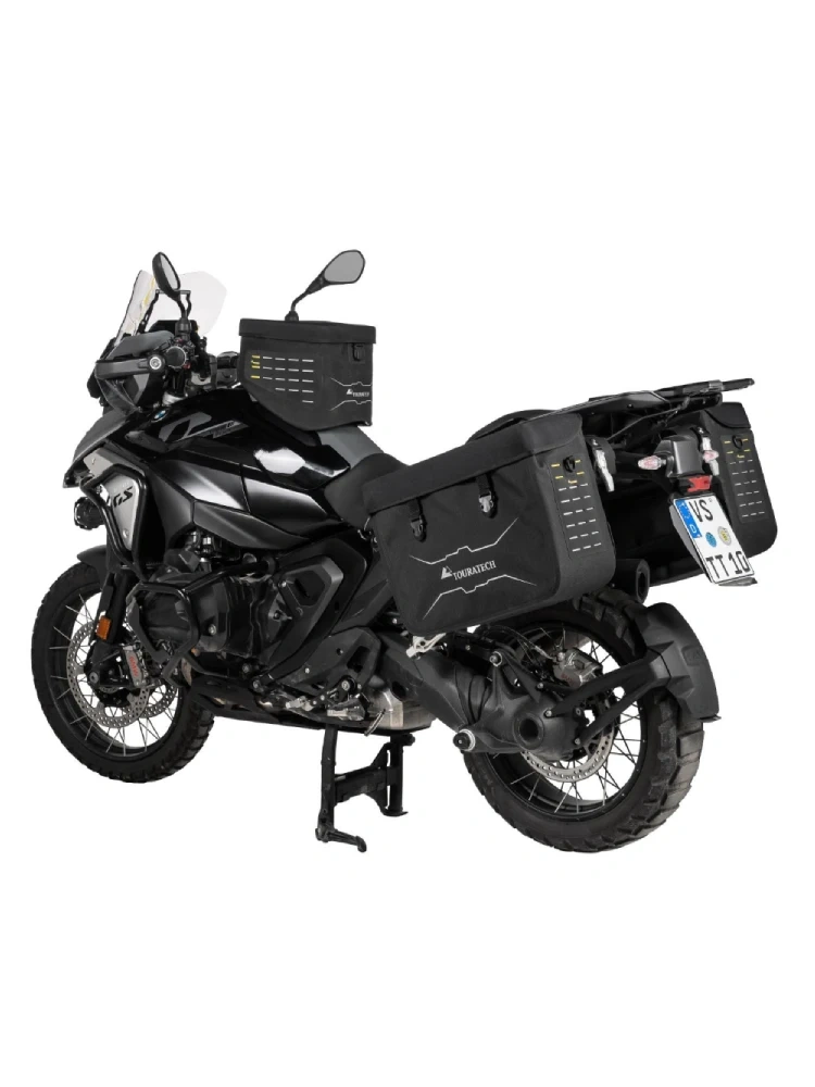 Zestaw sakw bocznych Touratech Travel Plug'n'Travel został zaprojektowany dla motocyklistów, którzy oczekują niezawodności, wysokiego komfortu użytkowania oraz maksymalnej funkcjonalności podczas dalszych wypraw i codziennych przejazdów. Model ten jest dedykowany do motocykla BMW R 1300 GS (23-) i współpracuje wyłącznie z systemem montażowym BMW Vario, co gwarantuje idealne dopasowanie do linii pojazdu, pewne osadzenie oraz stabilność w każdych warunkach drogowych. System Plug'n'Travel umożliwia szybki i intuicyjny montaż, dzięki czemu sakwy można w kilka chwil przygotować do jazdy, bez konieczności używania dodatkowych narzędzi.