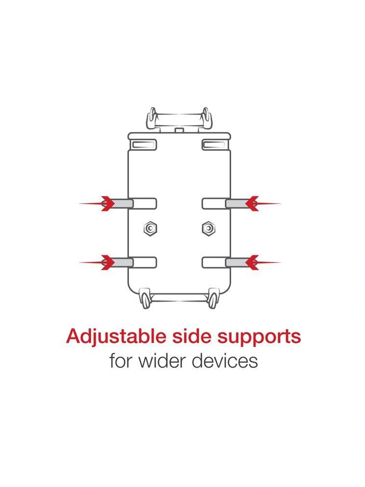 - uchwyt kompatybilny z urządzeniami przenośnymi mieszczącymi się w podanych wymiarach - lista dedykowanych modeli w zakładce " Załączniki"