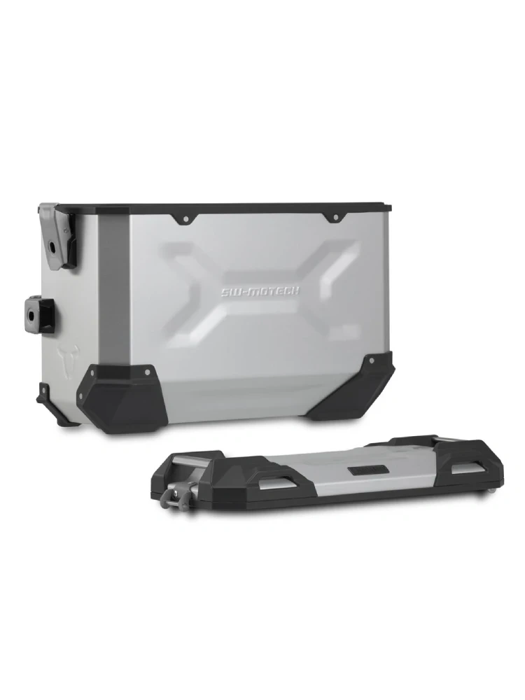 Wytrzymałe aluminiowe kufry TRAX ADV sprawiają, że czujesz się jak w domu na każdym odcinku drogi: wytłoczone wzory zwiększają stabilność spawanego aluminium o grubości 1,5 milimetra. Całkowicie zdejmowana pokrywa z uchwytami wykonanymi z anodyzowanego aluminium oraz zapięcie błyskawiczne ułatwiają załadunek i rozładunek bagażu motocyklowego; fazowana krawędź boczna zapewnia duży prześwit podczas pokonywania zakrętów. Stelaż i wielkość kufrów są idealnie dopasowane do tylnego kształtu i układu wydechowego motocykla. Przy rozwoju TRAX ADVENTURE pojawiło się następujące wyzwanie. Zbudować kufry, które pokonają wszystkie przeszkody motocyklowej codzienności, lekkie i łatwe w obsłudze, po prostu dobre: od praktycznego zamka błyskawicznego, przez zdejmowalną pokrywę, po ergonomiczny uchwyt. TRAX ADVENTURE łączą wysoką jakość z niską wagą. Ważą tylko od 4,6kg do 5,4 kg, czyli należą do grupy najlżejszych kufrów w swojej klasie.